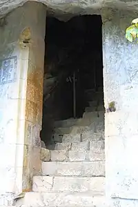В грот, расположенный в отвесной скале, ведёт крутая лестница с высеченными каменными ступенями. Посередине грота находится большой камень, который по преданию святой апостол использовал в качестве стола и ложа[5]. На стене пещеры высечен четырехконечный крест.