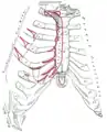 Передняя поверхность грудины и рёбер.
