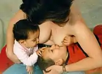 Тандемным вскармливанием называют кормление грудью, при котором мать кормит детей разного возраста (например, новорождённого и двухлетнего ребёнка)[8].