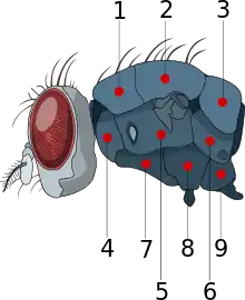 Грудь насекомых располагается между головой и брюшком. В её состав входят три сегмента, называемые соответственно переднегрудью (лат. prothorax), среднегрудью (лат. mesothorax) и заднегрудью (лат. metathorax)[1][2]. Среднегрудь и заднегрудь у крылатых стадий несут крылья — выросты их тергитов (спинных стенок)[2]; эти два сегмента объединяют под названием pterothorax (от греч. πτερόν — крыло).