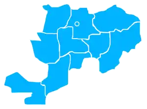 - сельские гмины: Гмина Бельск-Дужы, Гмина Блендув, Гмина Хынув, Гмина Гощын, Гмина Ясенец, Гмина Пневы