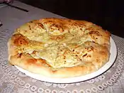 В различных местах Грузии пекутся разнообразные виды лепёшек с сыром — хачапури (ხაჭაპური), самые известные из которых хачапури по-аджарски (აჭარული ხაჭაპური) (с яйцом), по-имеретински (იმერული ხაჭაპური) (закрытые), «пеновани» (ფენოვანი) (из слоёного теста) и ачма (აჩმა) — варёное тесто с сыром. Наряду с хачапури в Грузии популярен и пирог лобиани (ლობიანი) с начинкой из варёной фасоли. Сванская лепешка с мясом называется кубдари (კუბდარი).