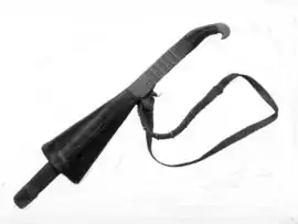 Подобно некоторым грузинским саблям, ножны могли украшаться своеобразной «юбкой». «Юбка» имела конусообразную форму, делалась из красного сафьяна, иногда обтягивалась сверху коричневым бархатом и наглухо крепилась к нижней части обоймицы. Предположительно, такая деталь защищала ножны от трения об седло и стремя, что выглядит логичным в отношении дорогого парадного оружия, но не совсем понятным в случае с простым оружием[1].