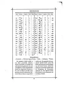- Russell, James R. Armenian Secret and Invented Languages and Argots // Acta Linguistica Petropolitana. — St. Petersburg: Institute of Linguistic Research, Russian Academy of Sciences, 2012.Оригинальный текст (англ.)[показатьскрыть]His script is based largely upon the forms of the letters of the Armenian and Georgian alphabets, in the latter case particularly the nuskhuri, or minuscule hand, of the khutsuri, i.e., Classical Georgian script, which is itself in its origins a modification by St. Mesrop Maštoc‘ of the Armenian erkat‘agir (uncial, lit. “iron letter”) alphabet he had devised at the beginning of the fifth century.