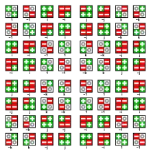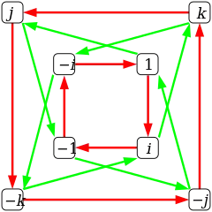 ![]() Q8 Красные стрелки обозначают умножение справа на i, а зелёные — умножение справа на j. |