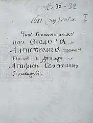 - Богданов А. П. Царь Федор Алексеевич. Православная Энциклопедия (1998). Дата обращения: 17 июля 2011. Архивировано 12 марта 2012 года.