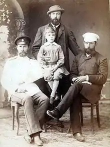 - Георгий — пал героем Первой мировой войны, от удушливого газа выпущенного немцами на позиции российских войск в 1915 году. Тело Георгия было доставлено в г .Тамбов и по его предсмертному завещанию было захоронено в братской могиле г. Тамбов. Молодого героя в последний путь провожал весь город. Когда генерала спросили: пускать ли народ на кладбище, он ответил: «Его хоронит народ, ответил генерал Грушецкий, и мы не смеем останавливать его». Покойный служил в кубанском дивизионе хорунжим, ему был 21 год, он не воспользовался льготой для окончания образования, добровольно вольноопределяющимся отправился в действующую армию. Последними его словами в предсмертной записке маме было: «…Прости меня…Крепко всех целую…Горячо всех вас любящий „Жоржик“»[6].
