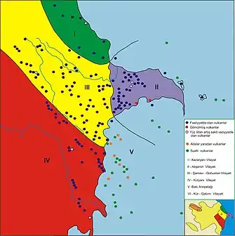 В Азербайджанской Республике действует более 300 из 700 грязевых вулканов[1][2]. Грязевые вулканы по происхождению связаны с нефтегазовыми месторождениями. На участках грязевых вулканов обнаружены богатые месторождения газоконденсата и нефти[3]. Самые известные и посещаемые грязевые вулканы находятся рядом с городом Гобустан[4].