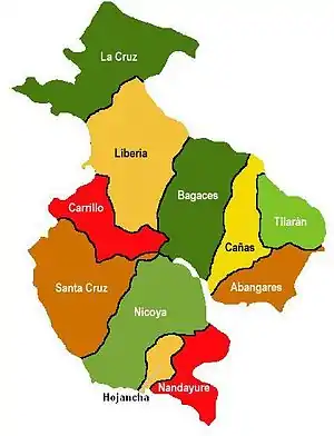 Находится в северо-западной части страны вдоль побережья Тихого океана и его заливов — Никоя, Папагайо и Санта-Элена. Значительная часть находится на полуострове Никоя. Граничит с провинциями Алахуэла на востоке, Пунтаренас на юго-востоке и государством Никарагуа на севере. Административный центр — город Либерия. В Либерии находится второй международный аэропорт Коста-Рики — Аэропорт Даниэль Одубер. Другие важные города — Каньяс, Никоя, Филадельфия. Является самой малонаселённой провинцией Коста-Рики. Численность населения — 326 953 чел. (2011). Занимает второе место по площади — 10 141 км².