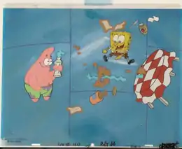 Примерно 50 человек работают сообща в анимации серии «Губки Боба»[39]. Раскадровка и малая часть анимации делаются на студии «Nickelodeon Animation Studio» в Бербанке, штат Калифорния. Большая часть анимации — за границей, в студии «Rough Draft Studios» в Южной Корее[29][42]. Команда корейских аниматоров использует раскадровки в качестве шаблонов, а после анимирует каждую сцену вручную, рисует фоны и делает покраску на компьютерах. После завершения работ в Корее калифорнийская команда монтирует серию и добавляет музыку[29][39].