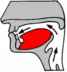 Образование губно-губных согласных (красным показан язык).