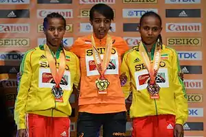 ![]() Гудаф Цегай (справа) на чемпионате мира в помещении 2016 года | ||||||||||||||||||||