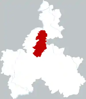 Уезд делится на 2 уличных комитета и 5 посёлков.