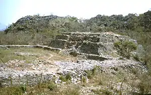 Также обнаружены стены укреплений, остатки жилых домов, полей для игры в мяч, другие гробницы и крупный «дворец» с остатками искусственных прудов и террас[1]. В центре городища располагались две площади, одна ниже другой, и 2 пирамиды, одна на востоке и одна на западе[2].