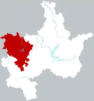 Уезд делится на 3 уличных комитета, 17 посёлков, 1 волость и 1 национальную волость.