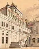 Теремной дворец Московского Кремля, 1635—1636 гг., — редкий сохранившийся пример использования гульбища в гражданской архитектуре