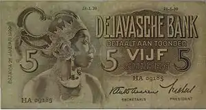 Крупнейшей из колоний была Голландская Ост-Индия, занимавшая территорию современной Индонезии. В 1828 году там был создан Яванский банк, ставший позднее основой Центрального банка Нидерландской Ост-Индии, а затем — независимой Индонезии[62]. Это финансовое учреждение эмитировало ценные бумаги с номиналом в гульденах. В 1854 году колониальная администрация ввела новую денежную единицу — гульден нидерландской Ост-Индии, также неформально называвшийся «яванским гульденом»[63].