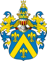 Герб этот принесен из Пруссии. В некоторых гербах стропило имеет обратное положение, то есть острием вниз, так что одна лилия помещена вверх, а две внизу[1].