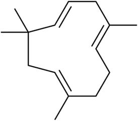 Гумулен (α-гумулен, (1E,4E,8E)-2,6,6,9-тетраметилциклоунидека-1,4,8-триен) - циклический природный сесквитерпен.
