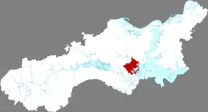 Городской уезд делится на 1 уличныq комитет, 2 посёлка и 3 волости.