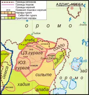 - зай (звай) — 7,1 тыс. чел. на островах и побережье оз. Звай (регион Оромия). Звай — это название озера и города, а зай — (само)название языка и народа. Христиане, но не считают себя гураге.