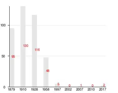 Число жителей по семейным спискам 1879 г.: 46 м. п., 49 ж. п.; по приходским сведениям 1879 г.: 38 м. п., 47 ж. п[2].