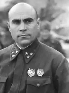 | Командный пункт 62-й армии: начальник штаба Н. И. Крылов, командующий В. И. Чуйков, член Военного совета К. А. Гуров, командир 13-й гв. сд А. И. Родимцев. Декабрь 1942 года. | Командующий 62-й армией Сталинградского фронта генерал-лейтенант Василий Иванович Чуйков и член военного совета Сталинградского фронта генерал-лейтенант К. А. Гуров в районе Сталинграда. 1943 год. | Член военного совета 62-й армии К. А. Гуров и командующий 62-й армией В. И. Чуйков. Сталинград. 1942 год. |