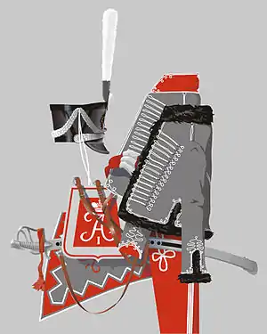 Выше было сказано, что русские гусары, возглавлявшиеся в 1654 году полковником Христофором Рыльским, носили крылья[36]. В Оружейной палате сохранился русский гусарский доспех XVII века. Русские гусары могли снабжаться и рейтарским доспехом. Так, например, поступил князь Хованский в 1661 году, когда он не успел получить гусарские латы. Как писал князь: «360 лат у меня в полк приняты. Из этого числа отдано гусаром 91 латы, по нужде на время, покамест по Твоему (царскому) указу присланы будут ко мне гусарские латы, а остальные 269 латы отданы в полк полковника Давыда Зыбина рейтарам… А гусарские латы и шишаки ко мне в полк июля по 7 число не бывали, а гусаром без лат и шишаков и без наручней отнюдь нельзя быть»[95].