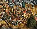 Судя по цвету одежды и шапке с павлиньим пером и драгоценным камнем — это не бездоспешный пахолик, а товарищ, снявший доспехи