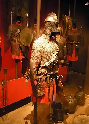 Помимо щита и шлема часто носились и доспехи, обычно кольчуга, но мог быть и бехтерец (кольчуга с вплетёнными металлическими пластинами) или иной доспех.