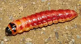 - ортогнатический — продольная ось головы расположена более или менее перпендикулярно к оси тела, ротовые органы направлены вниз. Данный тип характерен для практически всех крупных гусениц, живущих открыто на растениях (булавоусые чешуекрылые, бражники, хохлатки, коконопряды, медведицы и многие другие).