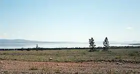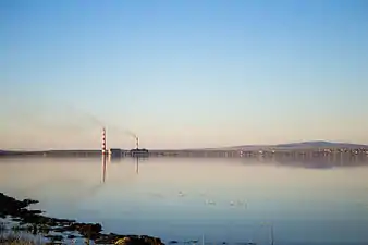 Гусиноозёрская ГРЭС. Вид с западного берега. Справа — Гусиноозёрск