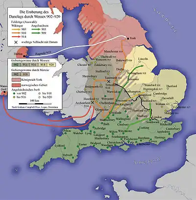 Перейдя в контрнаступление, Эдуард Уэссекский захватил Восточную Англию, Эссекс и восточную часть Мерсии.