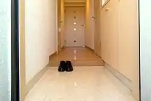 Традиция снимать обувь перед входом в дом существует с незапамятных времён, на неё не повлияла вестернизация японского жилища, начавшаяся в период Мэйдзи (1868—1912)[1].