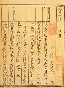 - Заметки западной столицы (кит. упр. 西京雜記, пиньинь Xi Jing Za Ji, палл. Си цзин цза цзи) — сборник историй.