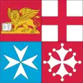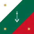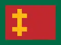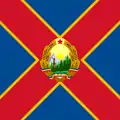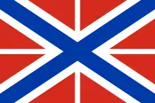 Красное прямоугольное полотнище, перекрещённое прямым белым крестом и наложенным на него синим диагональным (Андреевским) крестом с белой каймой.