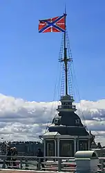 Крепостной флаг (флаг морских крепостей) — поднимается на флагштоках (мачтах) морских (приморских) крепостей и прочих береговых объектов, при этом в России, как и в некоторых других государствах, рисунок крепостного флага идентичен гюйсу и утверждается вместе с последним одними нормативными актами («гюйс и крепостной флаг»)[4][5], в связи с чем их часто путают и считают одним флагом. Однако, в некоторых нормативных актах эти понятия различаются («гюйс или крепостной флаг»)[6], а также в определённый период рисунки указанных флагов различались (см. ниже).
