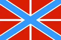 Красное прямоугольное полотнище, перекрещённое прямым белым крестом и наложенным на него синим диагональным (Андреевским) крестом с белой каймой.