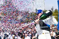 ![]() Гюнтер празднует победу в гонке Формулы Е | |