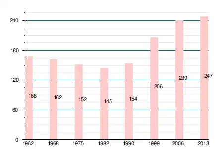 | 1962 | 1968 | 1975 | 1982 | 1990 | 1999 | 2006 | 2008 | 2011 | 2012 | 2013 |