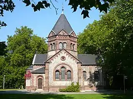 Часовня на кладбище была спроектирована городским архитектором Генрихом Гербером во время первого расширения кладбища на рубеже XIX—XX веков. В последующем территория увеличивалась ещё четыре раза, последний раз в 1963 году. В 1975 году городское кладбище было перенесено в парк Фридхоф Юнкерберг.