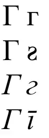 Курсивное и рукописное начертания строчной буквы Г весьма отличаются от печатного; сверх того они разнятся у русских (