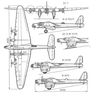 Приведённые характеристики соответствуют модификации ДБ-А с двигателями АМ-34РН.