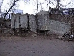 ДОТ № 385 уцелел, но находится в полуразрушенном состоянии.