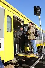 Пассажирские двери снаружи и изнутри оборудованы кнопками для открытия дверей по требованию пассажира в режиме готовности открытия по требованию; рядом с дверями головного модуля также имеются кнопки вызова помощника машиниста для обеспечения въезда и выезда пассажиров в инвалидных колясках[3].