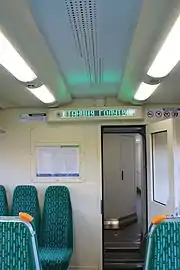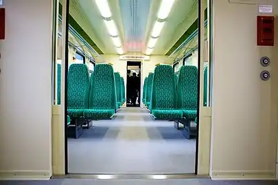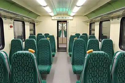Салон головного модуля вагона Мг, переход в силовой модуль