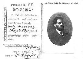 ![]() Удостоверение члена Учредительного собрания Грузии, раввина Моше Даварашвили | |