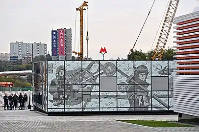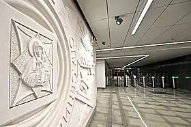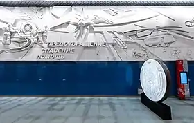 Оформление стены станции с барельефами с изображением пожарных и спасателей