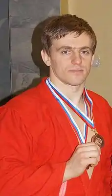 Денис Игоревич Давыдов (1987 год, Балашиха, Московская область, РСФСР, СССР) — российский самбист, чемпион России, Европы и мира, победитель Универсиады в Казани, Заслуженный мастер спорта России.