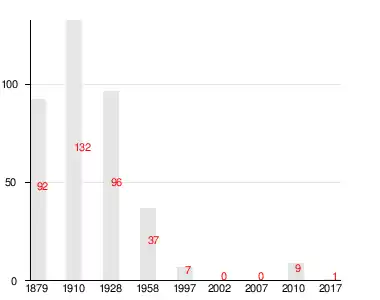 Число жителей по семейным спискам 1879 г.: 44 м. п., 48 ж. п.; по приходским сведениям 1879 г.: 47 м. п., 52 ж. п[3].